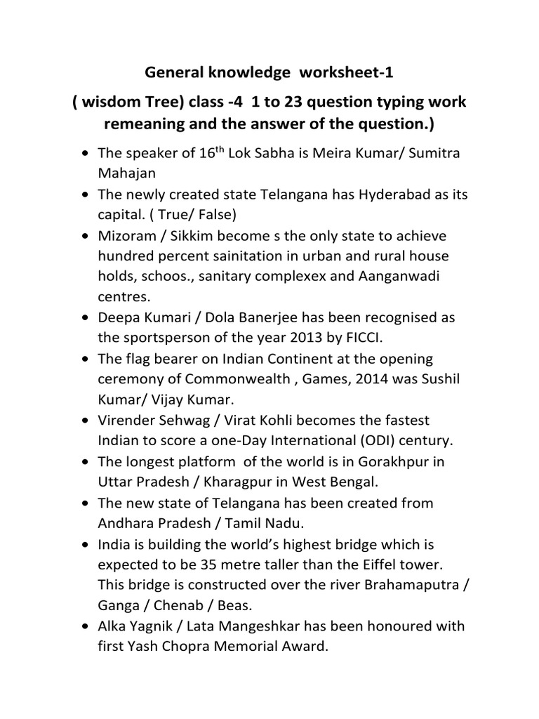 General knowledge is also moderately associated with verbal ability. Teaching and learning general knowledge is always fun. Simple general knowledge quiz questions and answers for kids (watch video). The quizzes and hunts section of the site is full of fun practice activities for your students so hopefully this is what you were looking for. You can refer these sample paper & quiz for preparing for the exam.